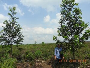 Penanaman agroforestry diselang seling antara tanaman bernilai lingkungan dengan tanaman sela yang bernilai ekonomi. Bahkan tanaman hutan yang dipilih juga yang memiliki nilai ekonomi tinggi seperti jelutung. Lahan di sekitar program sudah terbakar hampir semuanya tahun 2019, tetapi lahan program ini relatif aman, terbakar satu hektar dari tiga hektar. Padahal di sekeliling areal sudah terbakar.