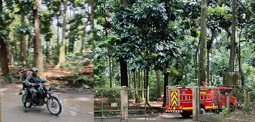 Di Hutan Penelitian Dramaga – Bogor, saat bersamaan, dua pemandangan yang terjadi (Gulben oleh prajurit TNI – BPBD & praktek karbon hutan oleh CKL). Yang satu merupakan kesiagaan dampak bencana hidrometeorologi, dan satunya lagi terkait aksi mitigasi perubahan iklim.