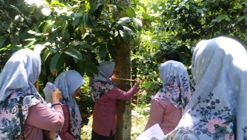 Dosen IPB gandeng ibu-Ibu tani Desa Karyasari ikut andil dalam pelatihan pengukuran dimensi pohon. Melalui kegiatan ini tercipta hubungan yang lebih dalam antara warga dan pohon-pohon yang mereka tanam.