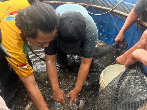 “Hari ini kita membuktikan bahwa teknologi bioflok tidak harus mahal dan rumit. Melalui pendanaan BIMA PKM 2025, kami mendampingi mitra menerapkan inovasi Bioflok Tanpa Molase. Kami mengganti molase dengan Aquacell Tracequa dan Aquacell Gostrong yang jauh lebih ramah lingkungan” tambah dosen IPB University tersebut di sela-sela kegiatan panen (Sabtu, 29 November 2025).